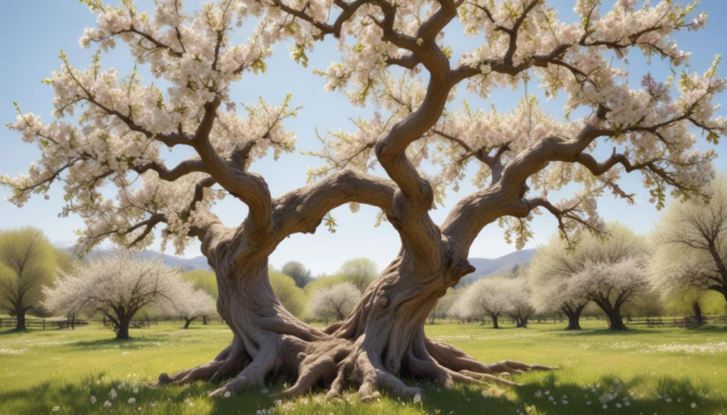 Im Frühling blühten die zarten weißen und rosafarbenen Blüten, die nicht nur die Sinne erfreuten, sondern auch die Grundlage für die Apfelernte im Herbst bildeten. Diese Zeit war entscheidend für das lokale Ökosystem, da sie eine Vielzahl von Lebensformen anlockte. Bienen, die für die Bestäubung der Blüten verantwortlich waren, schufen durch ihre Tätigkeit eine Verbindung zu den umliegenden Feldern und Gärten. Das Zusammenspiel zwischen dem Menschen und der Natur, das durch den Apfelbaum verkörpert wurde, erinnerte daran, wie wichtig es war, diese Balance zu erkennen und zu bewahren.
